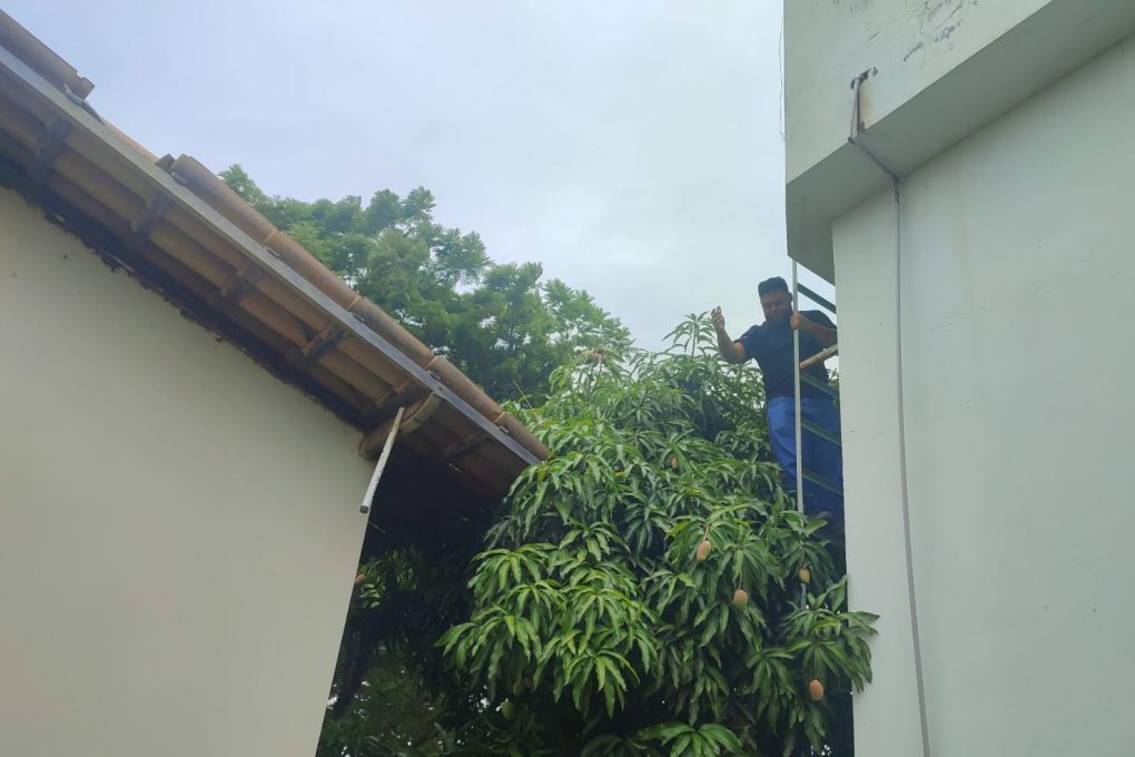 A equipe de manutenção da Secretaria Municipal de Saúde (SMS) está em Bate-Pé para verificar a situação da unidade de saúde do distrito. Assim que as chuvas passarem, o telhado será restaurado. Antes, será feita a limpeza das calhas. Já a equipe de Administração da SMS está na Unidade Nelson Barros, no Kadija, para vistoriar o local que teve alagamento causado pelo entupimento de calhas. Uma ronda é realizada na cidade e em três distritos da Zona Rural para verificar se há danos estruturais em outras unidades de saúde do município. A Secretaria Municipal de Meio Ambiente (Semma) e a Sesep já foram acionadas para fazer a poda de árvores nas duas unidades.