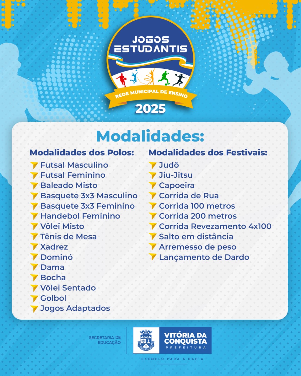 Três polos dos anos finais estarão disputando de 23 a 25 de julho, das 8h às 15h, no Ginásio de Esportes Raul Ferraz, nas modalidades Futsal Masculino, Futsal Feminino, Baleado Misto, Vôlei Misto, Basquete Masculino, Basquete Feminino, Handebol Feminino, Tênis de Mesa e Jogos de Mesa (Xadrez, Dama e Dominó). Participam as escolas municipais Prof.ᵃ Fidelcina Carvalho, Juiz Dr. Gildásio Pereira Castro, Padre Isidoro (Estiva), Baixa da Fartura (Baixa da Fartura), Prof.ᵃ Marlene Flores, Prof.ᵃ Lycia Pedral e Lisete Pimentel Mármore.