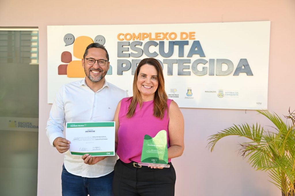 A premiação ocorreu em Brasília, no dia 18 de dezembro, onde o Complexo de Escuta Protegida da Prefeitura Municipal conquistou o primeiro lugar na categoria “Poder Executivo” do eixo “Medidas Protetivas”. Essa conquista reafirma o compromisso de Vitória da Conquista com a proteção dos direitos da infância e com a promoção de um ambiente mais seguro para as futuras gerações.