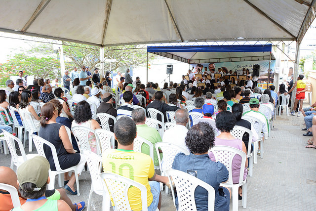 Em seguida, a comunidade prestigiou o ato cívico realizado em frente à Casa Memorial Régis Pacheco. A programação contou com hasteamento das bandeiras e execução dos hinos Nacional e à Vitória da Conquista, pela Filarmônica Maestro Vasconcelos, que apresentou ainda outras músicas. O coral do Programa Vivendo a Terceira Idade também emocionou o público.