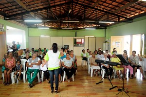 ‘Muito legal’ – A aposentada Cassionila Moreira do Carmo, 68 anos, participa do grupo UVA desde que foi criado pela equipe do Cras. Antes, ela passava quase todo o tempo dentro de casa, dedicando-se a um de seus passatempos favoritos: o bordado. Com a criação do grupo, passou a ter novas opções de atividades. “É muito legal”, diz. “Antes, eu não saía muito de casa. Às vezes, a gente fica com a cabeça pesada por causa de alguns problemas, e isso ajuda muito. O pessoal aqui é muito bom”.