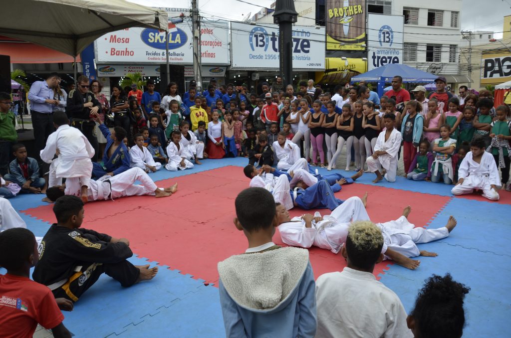 As comemorações do aniversário de Vitória da Conquista já começaram. Na manhã desta quarta-feira (7), educandos do Conquista Criança estiveram na Praça Nove de Novembro levando uma mostra do trabalho que eles desenvolvem no Programa. Exposição de artesanatos e de hortifrutigranjeiros ficaram disponíveis na praça, onde as crianças também realizaram apresentações culturais de violão, percussão, balé e jiu-jitsu.