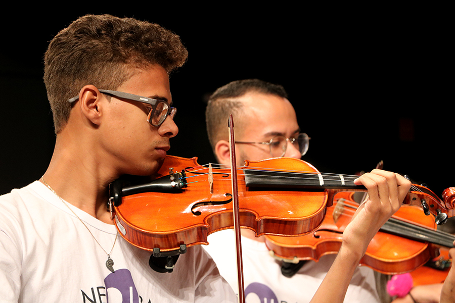 Assim como o senhor Simeão, que estava na plateia, no palco também tinha pessoas realizando um sonho. “Eu jamais imaginaria que um dia estaria aqui. Era um sonho de criança tocar violino e, com o projeto, eu pude realizar esse sonho”, afirma o jovem Micael Carvalho, que foi educando do programa Conquista Criança por seis anos e atualmente faz parte de um dos Núcleos Estaduais de Orquestras Juvenis e Infantis da Bahia – Neojiba, instalado na sede do programa em parceria com a Prefeitura Municipal.