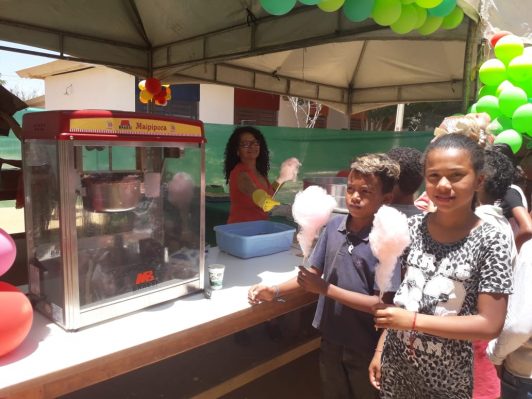 Além das brincadeiras, Marizete também destacou que as crianças puderam saborear muitas guloseimas como pipoca, algodão doce e maçã do amor. “Paralelo as brincadeiras, muita comida, diversão, entretenimento e interação com os nossos educandos”.