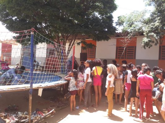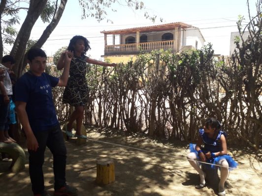 Posteriormente, durante toda a manhã, foram realizadas atividades voltadas para as crianças. Brincadeiras lúdicas, pula-pula, slackline e circuito de brincadeiras. A Coordenadora acrescentou que “fizemos uma parceria e a ronda escolar esteve conosco com brinquedos para interagir com as crianças”.
