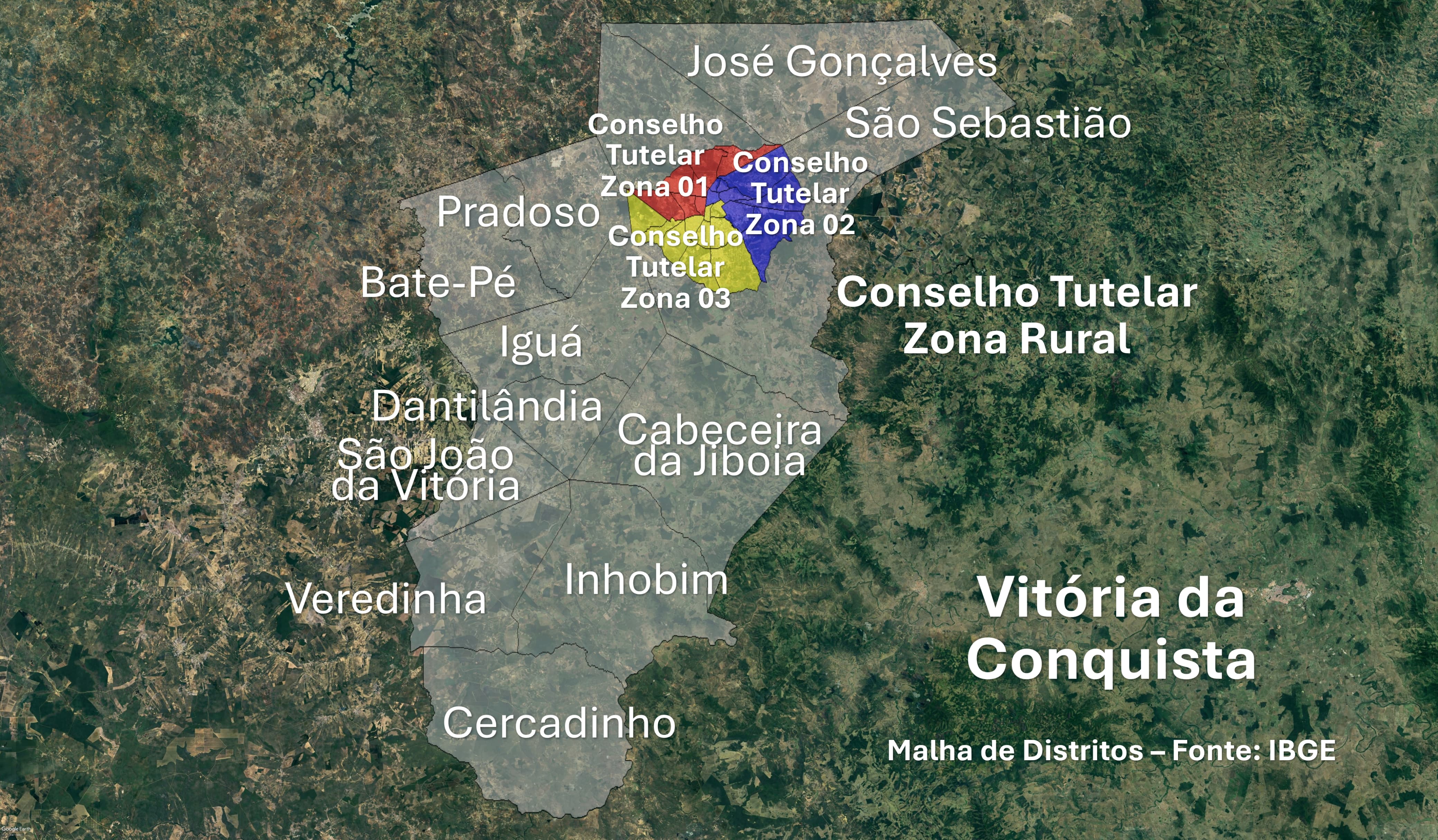 Áreas de atuação: Zona Rural e demais localidades não contempladas pelos outros Conselhos Tutelares, envolvendo, inclusive, distritos e subdistritos.