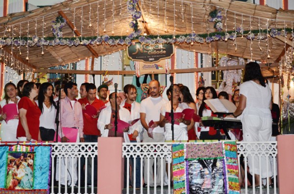 “Natal dos Anjos”– O Coro da Igreja Batista Bethéem foi o segundo grupo a se apresentar no Memorial, nesta quarta-feira. Com a regência de Mário Vieira, 35 músicos abrilhantaram a noite com parte do musical “Natal dos Anjos”, que será reapresentado na íntegra no dia 25 de dezembro na sede da igreja.