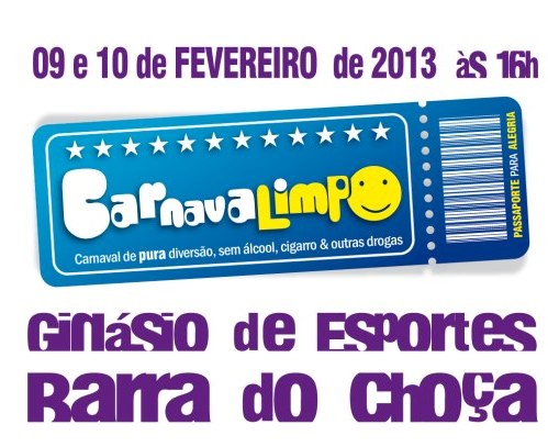 A Comunidade Fazenda Vida e Esperança (Cotefave) promoverá, nos dias 9 e 10 de fevereiro, o Carnavalimpo. Trata-se de um carnaval diferente,indoor, sem a presença do álcool e de outras drogas. A festa acontece nos dias 9 e 10 de fevereiro, a partir das 16h, no Ginásio de Esporte de Barra do Choça, e conta com o apoio da Prefeitura local.