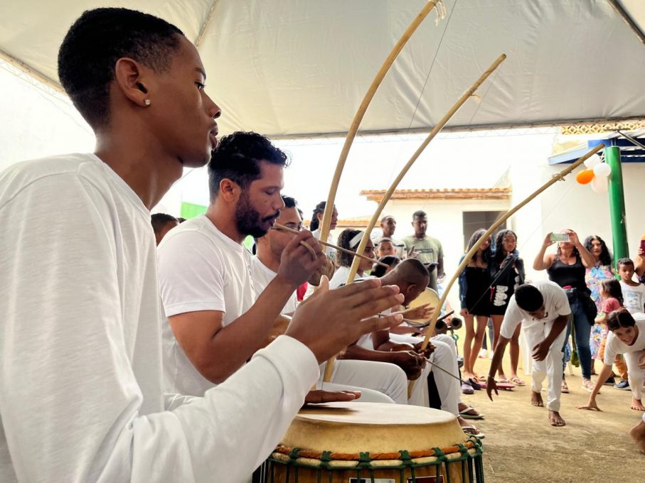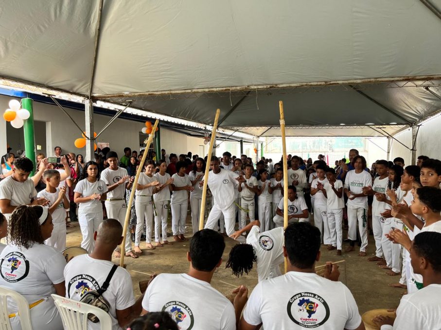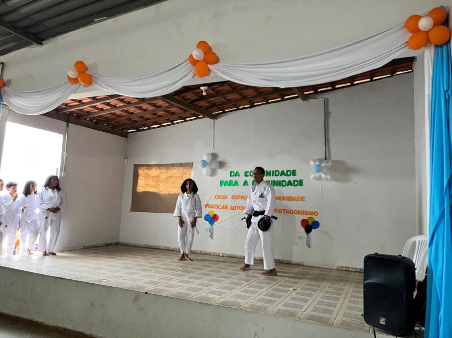 A adolescente Cauane Novaes, 17 anos, se apresentou com o grupo de Karatê do Conquista Criança no evento comemorativo do Jardim Valéria. Para ela, essa foi uma oportunidade de mostrar à comunidade a transformação que teve em sua vida por meio da assistência social. “Lá no Conquista Criança, eu participo de artes, percussão e karatê. Foi bom eu poder apresentar o karatê e a percussão, porque o grupo tem bastante experiência para passar. Foi muito legal poder mostrar a minha experiência, o que eu tenho aprendido lá no Conquista Criança”, comemorou a adolescente.