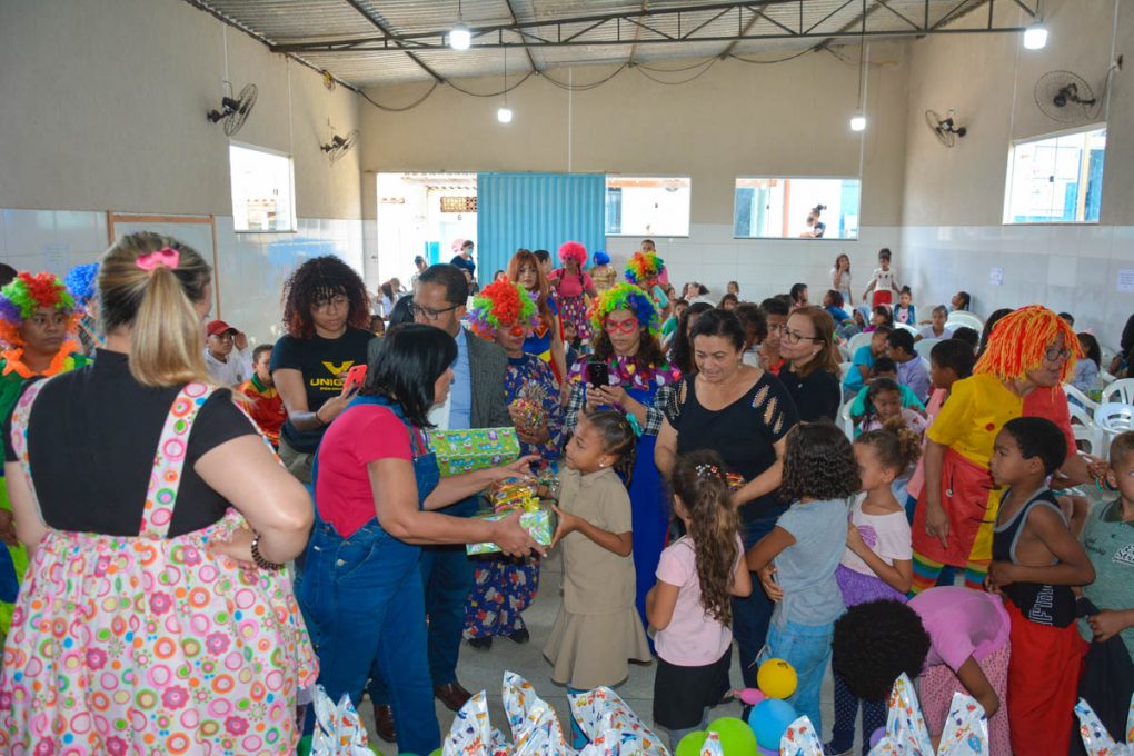 Já o Cras Bruno Bacelar fez a festa em articulação com a Escola Municipal Batista Peniel e contou com o apoio do Fórum Municipal de Vitória da Conquista, que doou brinquedos e quites de guloseimas para 176 crianças com idade entre 04 e 12 anos, matriculadas na unidade escolar e inseridas no SCFV. “Essa é uma ação anual em que os juízes e servidores da comarca fazem doações para crianças que vivem em contexto de vulnerabilidade, como símbolo de alegria e de esperança “, explicou o diretor do Fórum João Mangabeira, juiz João Batista Pereira.