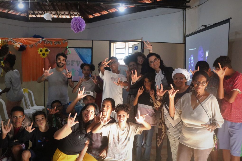 As crianças e adolescentes do Serviço de Convivência e Fortalecimento de Vínculo (SCFV) do Cras Vila América participaram de uma aula de Libras, nesta segunda-feira, 10, ministrada pela intérprete da Língua Brasileira de Sinais, Renata Lima, que buscou conscientizar os jovens do SCFV sobre a importância da comunicação inclusiva.