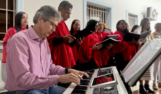 Criado há 19 anos e regido pelo maestro e médico da unidade, Alberto Ferreira, o Coral compõe as ações de terapia ocupacional do Cerest, promovendo integração, convívio social, bem-estar e contribuindo diretamente para a saúde mental dos participantes. Com apresentações realizadas em eventos internos e externos, o coral reúne pacientes, estudantes de medicina e servidores, que interpretam repertórios variados em uníssono.