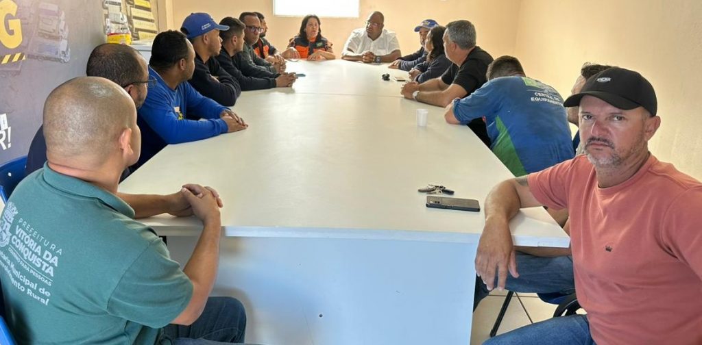 A equipe da Defesa Civil se reuniu nesta segunda-feira (11) com servidores da Central de Equipamentos (Deserg), setor vinculado à Secretaria Municipal de Infraestrutura Urbana (Seinfra), a fim de discutir ações de caráter preventivo para o período chuvoso. O encontro faz parte do ciclo de reuniões iniciado no fim de agosto, com o objetivo de criar uma rede de apoio para prevenir possíveis danos causados pelas chuvas em Vitória da Conquista.