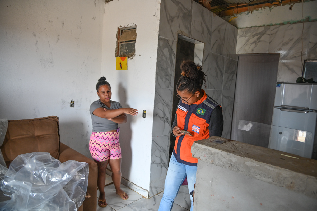 Uma das moradoras atendidas foi Mikaele Nolasco, que agradeceu o trabalho da Defesa Civil. “Eles vieram ontem, avaliaram, nos orientaram, e voltaram hoje pra nos ajudar. Desde a hora que entramos em contato, fomos atendidos rapidamente”.