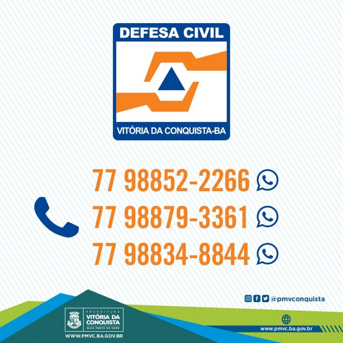 A Defesa Civil de Vitória da Conquista informa que o número 199, que o órgão utiliza para atender à população, está temporariamente fora do ar. Enquanto isso, é possível contatar o serviço pelos números: 98834-8844, 98852-2266 ou 98879-3361 .