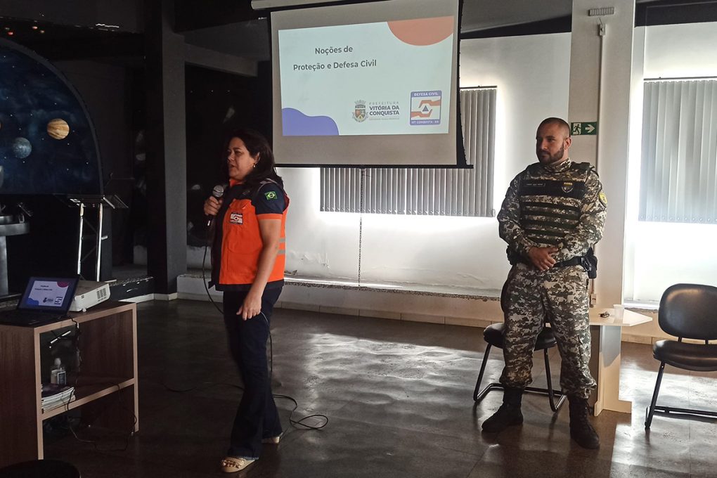 A Coordenação Municipal de Defesa Civil (Compdec) realizou, nessa quinta-feira (28), no auditório do Planetário Professor Everardo Públio de Castro, mais uma reunião em preparação para o período de chuvas intensas que ocorrem, em geral, nos últimos meses do ano. Dessa vez, o setor envolvido foi a Guarda Municipal. Os servidores foram capacitados para atuar nas ações de emergência e receberam noções básicas de defesa civil, com ênfase para os impactos das chuvas na cidade.