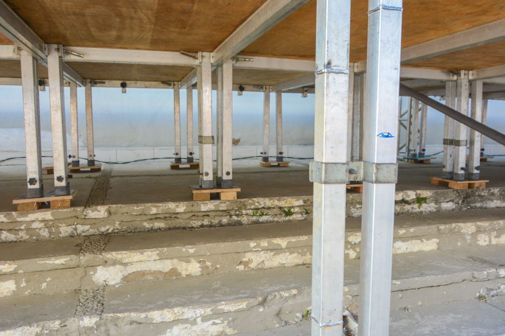O trabalho consiste na verificação das estruturas de sustentação do palco onde os artistas vão se apresentar, das hastes metálicas que sustentam o camarote situado na área lateral e ainda das instalações elétricas. Onde houve necessidade, foram feitas sugestões de melhorias, a fim de prevenir eventuais acidentes.