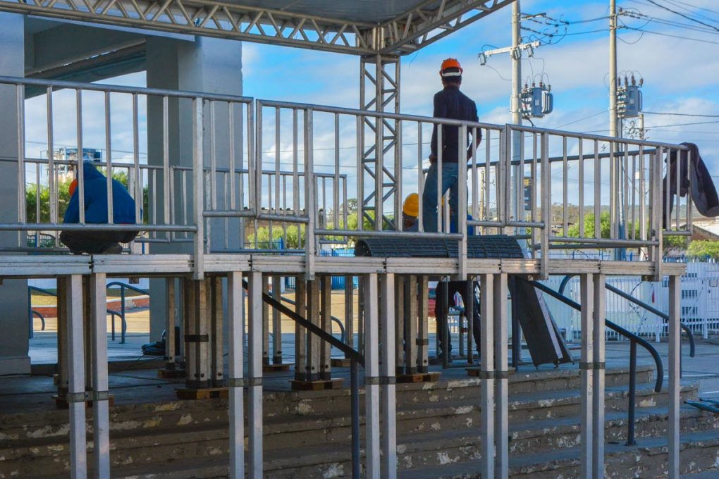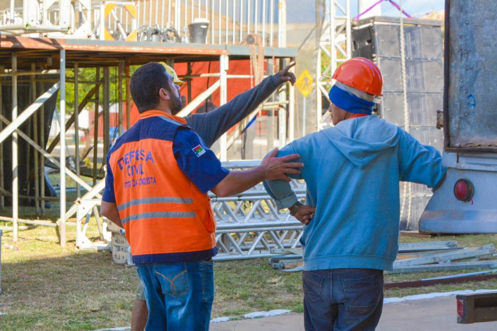 “Tendo em vista a necessidade do aspecto preventivo da Defesa Civil, a gente vem acompanhando a montagem das estruturas, desde as reuniões, para garantir a segurança do evento. Já demos algumas orientações para a equipe que está à frente da execução da montagem. Tudo está sendo acompanhado e orientado”, explicou o engenheiro da Defesa Civil, Gabriel Queiroz.