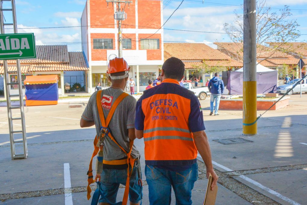 A Defesa Civil está acompanhando a montagem da estrutura dos shows do Arraiá da Conquista, a exemplo do palco principal e do camarote, do Centro Cultural Glauber Rocha. Segundo a equipe, a vistoria leva em conta, principalmente, as questões de segurança.