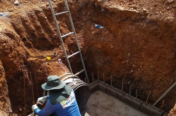 Além desse tipo de intervenção, também foi iniciada a instalação do primeiro PV, sigla pela qual são chamados, no jargão técnico, os Poços de Visita. São instalações popularmente conhecidas como “bueiros”, que dão acesso às redes subterrâneas pelas quais passam os canais de drenagem. É por onde os técnicos entram para fazer serviços de manutenção nas tubulações. O primeiro PV foi implantado na Rua L, também no Panorama.