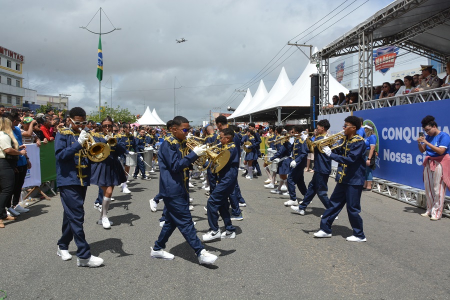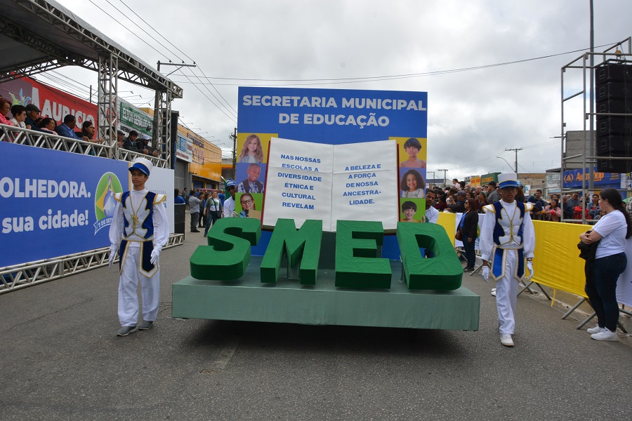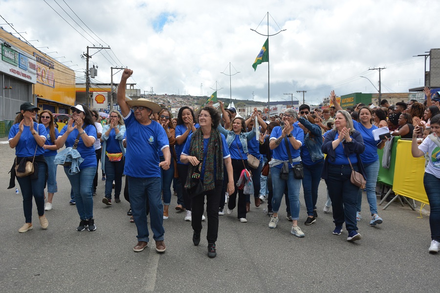 “Conquista Acolhedora. Nossa cidade é sua cidade” foi o tema desenvolvido pela Secretaria Municipal de Educação, no desfile comemorativo de 7 de setembro, Dia da Independência, que ocorreu na manhã desta quinta-feira (7). E os cerca de 1800 alunos, de 24 escolas diferentes da rede, divididos em 17 alas, fizeram bonito. O evento teve carros alegóricos, fanfarras, coreografias, percussão, diversas apresentações cênicas e poéticas, carros alegóricos, adereços e roupas customizadas, alas com evoluções, brasões e personalidades homenageadas. Também houve uma referência ao Bicentenário da Independência do Brasil na Bahia, com símbolos e as heroínas Maria Quitéria, Joana Angélica e Maria Felipa.