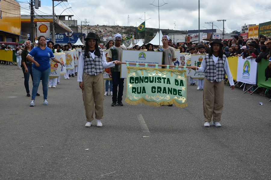 Na ala cinco, o tema foi “Conquista da Rua Grande”. Os brasões de famílias que contribuíram para a formação do município (Gonçalves, Gusmão, Andrade, Oliveira, Ferraz, Santos, Silva, Sousa, Fonseca, Lemos, Figueira, Fernandes, Brasil e Cairo) foram expostos, assim como nomes de praças e ruas antigas de Conquista (Rua do Espinheiro, Rua da Boiada, Rua Magassapo, Baixa da Égua, Rua do Gancho, Rua da Corrente, Beco da Rainha, Praça do Cajá, Praça do Carvão, Beco da Tesoura, Rua da Moranga, Rua dos Tocos, Rua Flores, Pela Jegue e Sissi). A fanfarra do CEI de São João da Vitória se apresentou e o desfile foi com os alunos do CEI de Cabeceira.