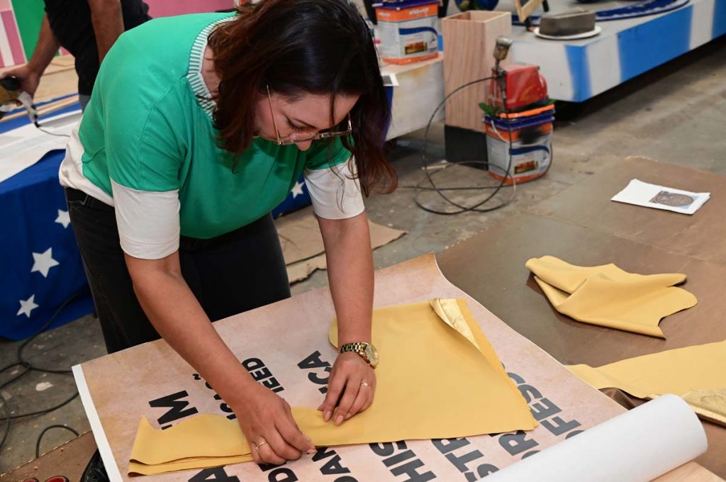 Coordenadora do Serviço de Material de Ensino Aprendizagem da Smed, Nágida Schmitz destaca o empenho de toda a equipe de 30 funcionários para garantir a excelência do desfile. “A expectativa nossa é de que a gente termine antes das 19h do sábado. Mas com certeza, com toda a experiência da equipe desses anos, a gente sabe que estará tudo perfeito para a avenida no dia 7. Assim que finalizarmos, vamos levar todo o material para o Centro Glauber Rocha, guardar com todo o cuidado, pra o domingo logo cedo colocarmos na avenida, na ordem correta”.