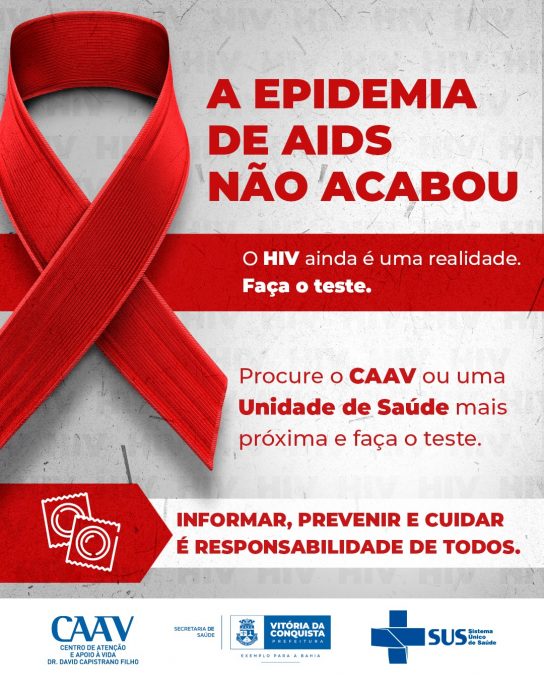 Em Vitória da Conquista, a Secretaria Municipal de Saúde (SMS), por meio do Centro de Atenção e Apoio à Vida (Caav), realiza todos os anos a campanha em alusão ao Dia Mundial de Luta contra a Aids, que é comemorado em 1º de dezembro. Com o tema “A epidemia de Aids não acabou”, o objetivo principal da campanha é fazer o diagnóstico precoce e sensibilizar sobre o uso do preservativo em todas as relações sexuais, bem como manter os pacientes já diagnosticados em uso regular da Terapia Antirretroviral (Tarv).