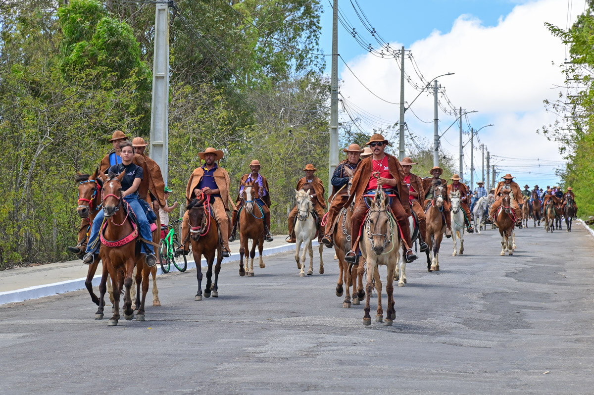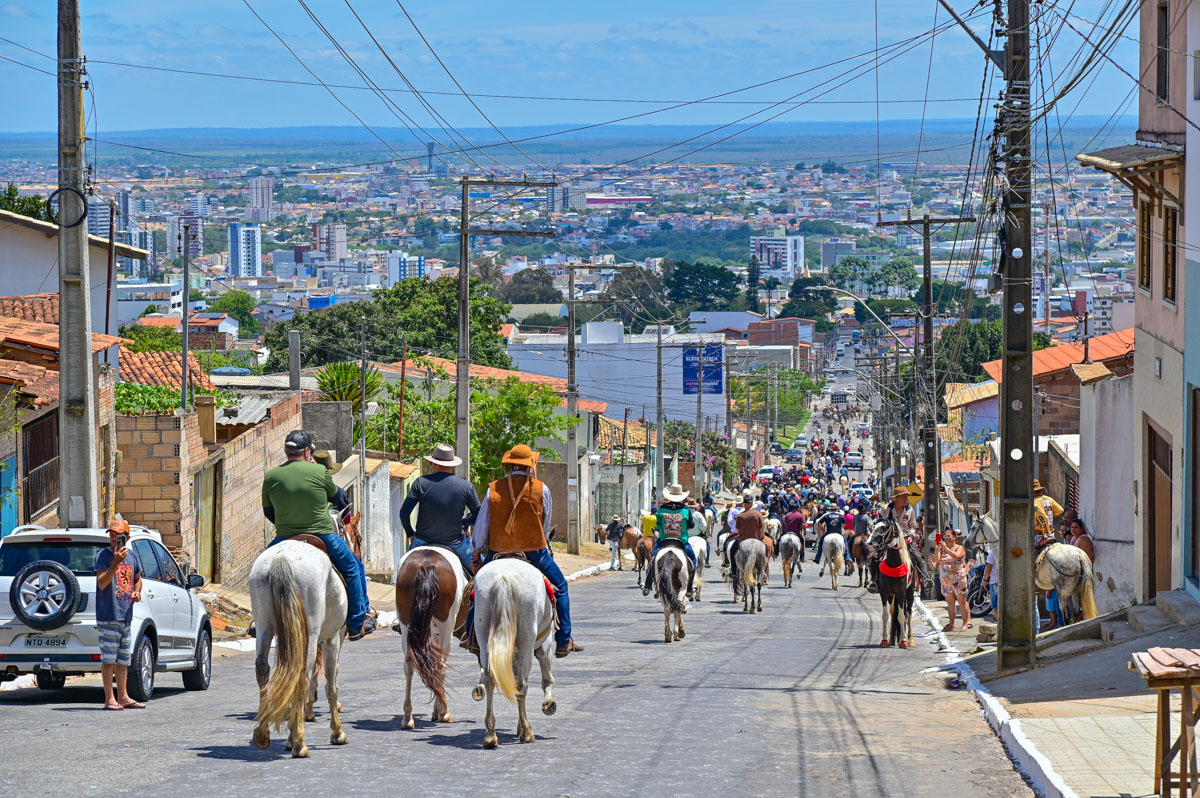 Após a bênção dos vaqueiros, uma comitiva formada por mais de 500 cavaleiros e amazonas seguiu em cavalgada pela Rua do Cruzeiro, Praça Sá Barreto, ruas João Pessoa, Siqueira Campos, Rosa Cruz e Jorge Teixeira, até o Estádio Municipal Lomanto Júnior, um momento de fé e devoção à Nossa Senhora Aparecida.