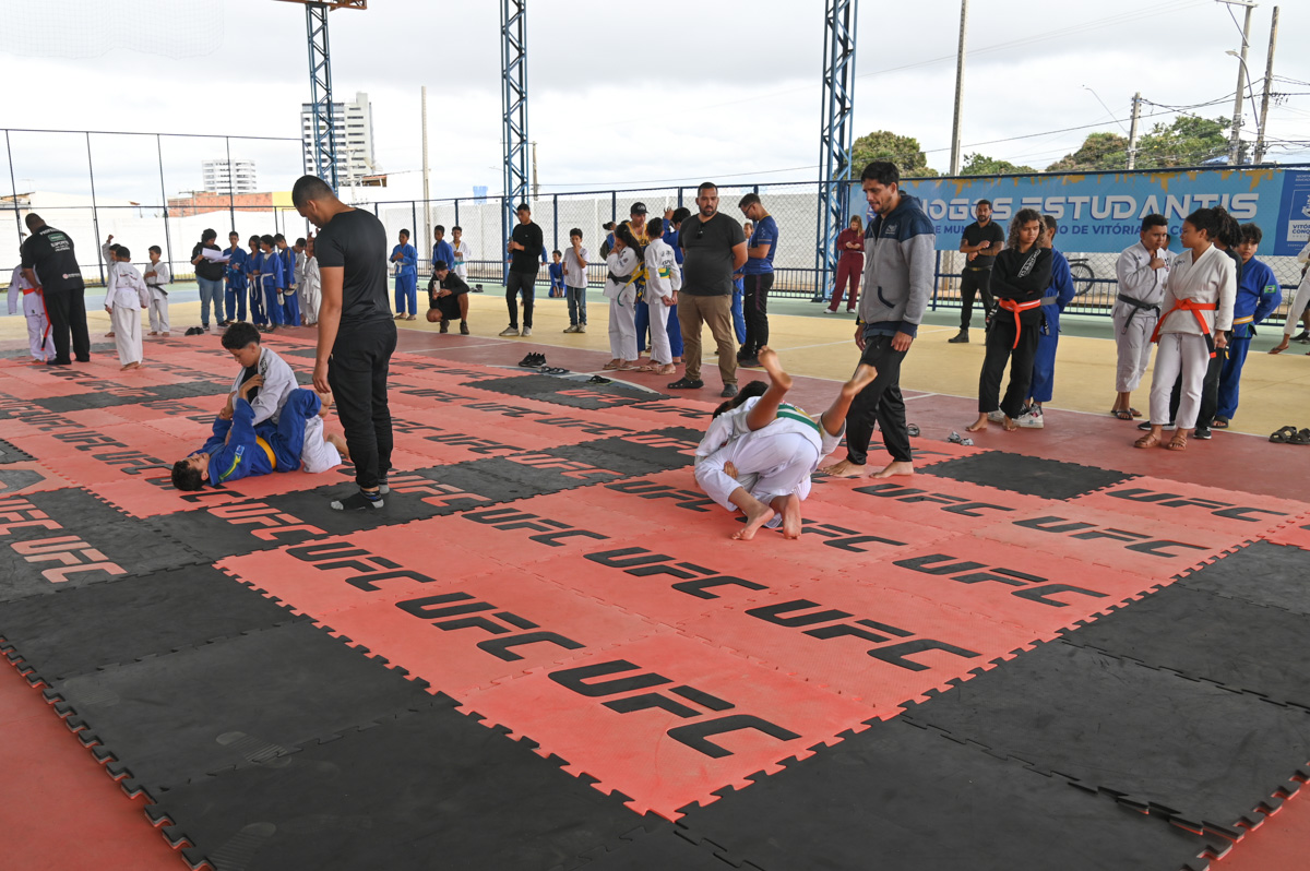 Nesta sexta-feira (18), a Secretaria Municipal de Educação (Smed) deu início às competições dos Jogos Estudantis 2025. As disputas foram de artes marciais, nas modalidades capoeira, jiu-jitsu e judô, e ocorreram no Estádio Municipal Edvaldo Flores. Foram 22 escolas, num total de 630 alunos inscritos, sendo 270 para a capoeira, e os demais no jiu-jitsu e judô.