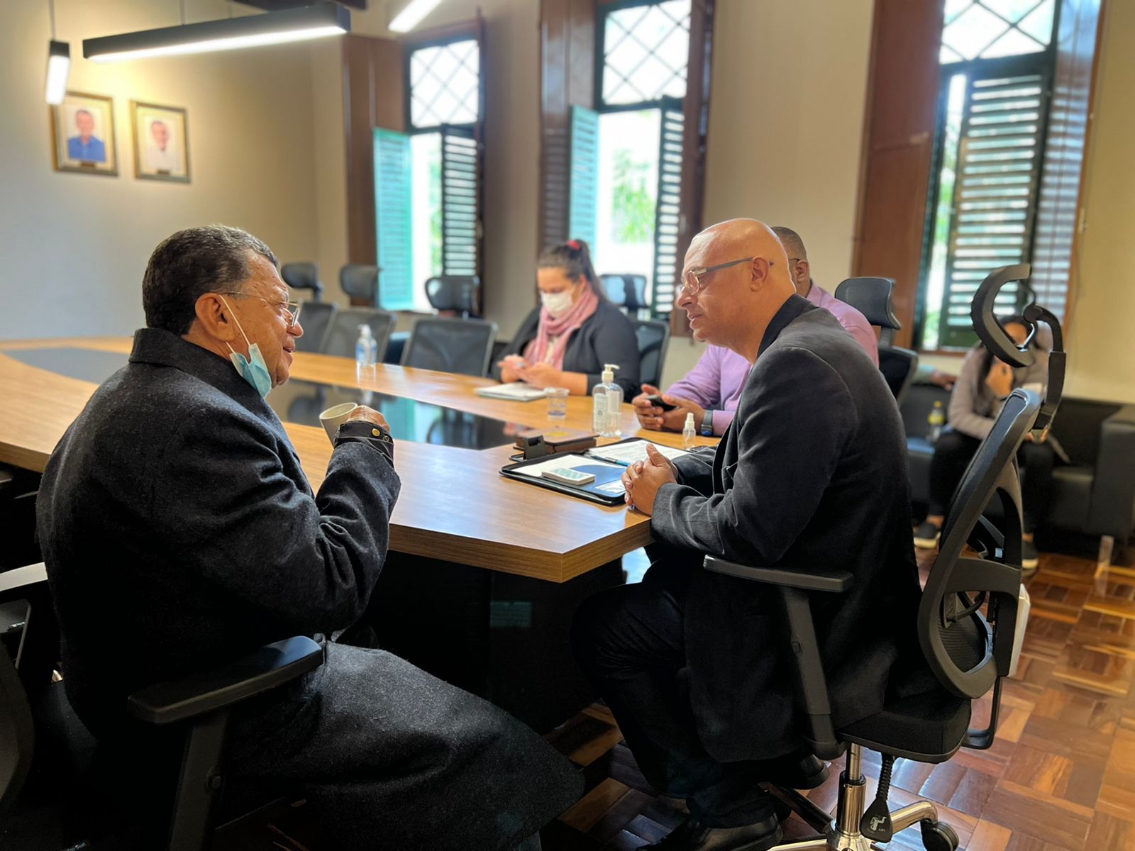 Vários dos amigos em comum mencionados por Élquisson, aliás, aparecem nos retratos que enfeitam as paredes do gabinete, que têm, de semelhante, o fato de, em algum momento, terem se sentado na cadeira que hoje é ocupada pela prefeita Sheila – e, temporariamente, por Dudé. Ao se virar para olhá-los, Elquisson dizia algo sobre cada um.
