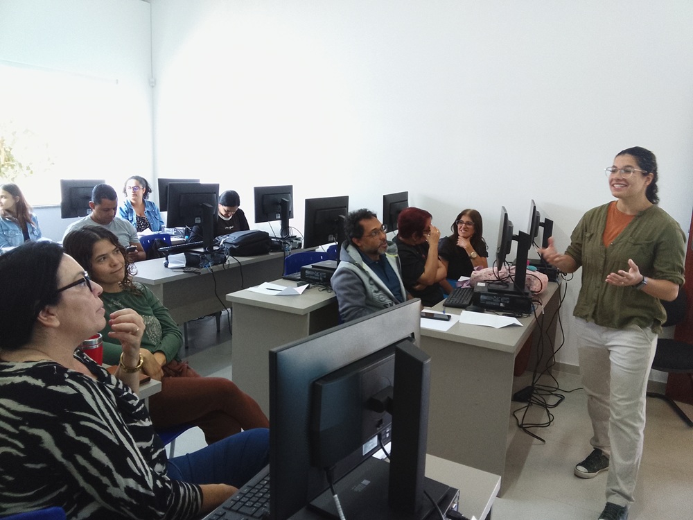 “Começamos trazendo um pouco da realidade dos alunos municipais, para pensar em como fazer com que esses alunos se interessem mais pela Língua Inglesa. A partir disso, falamos de ideias de jogos para trabalhar a ‘gamificação’, metodologia ativa para auxiliar os professores justamente nesta produção de aula, no dia a dia”, explicou a professora.