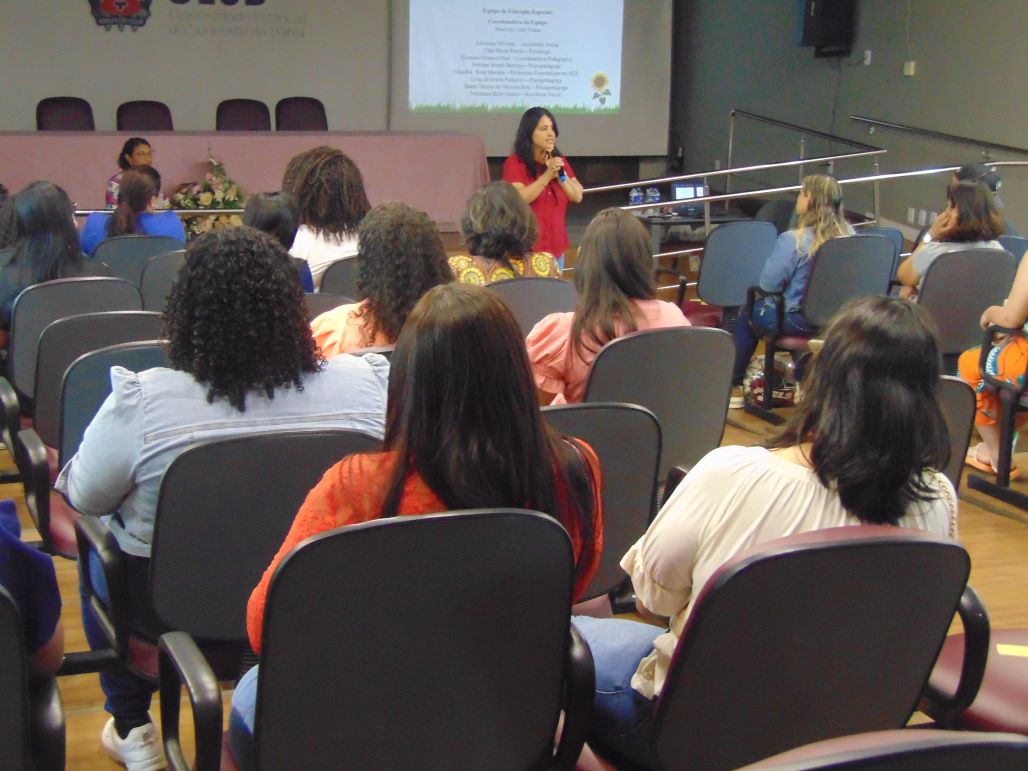A professora Gilnúbia Mendes da Silva falou sobre a “Educação Especial na perspectiva da Educação Inclusiva”. Ela destacou que a educação inclusiva compreende a educação especial dentro da escola regular, de forma a transformar a escola em um espaço para todos, voltada para a cidadania global, plena e livre de preconceitos, algo que reconhece e valoriza as diferenças.
