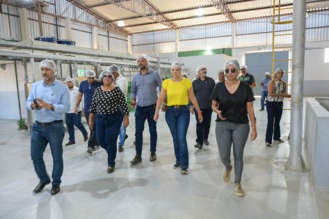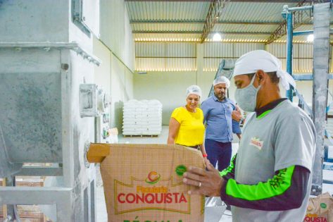 Dando sequência às agendas na zona rural desta quinta-feira (19), a prefeita Sheila Lemos também esteve no povoado de Corta Lote, onde conheceu as instalações e o funcionamento do complexo agroindustrial da Fecularia Conquista.