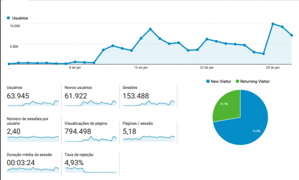 Em janeiro, o site da Prefeitura dobrou o número de visitas em relação ao mês de dezembro e se tornou o segundo veículo mais acessado da cidade, passando de 380 mil para 794 mil acessos. Os dados foram obtidos pelo Núcleo de Tecnologia da Informação (NTI) da Prefeitura através do site similarweb.com, cuja principal função é realizar a sondagem de acessos online.