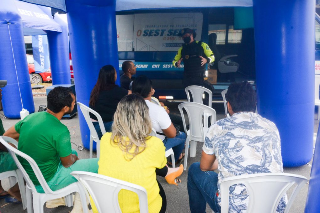 Os motoristas participaram de palestras rápidas sobre segurança no trânsito
