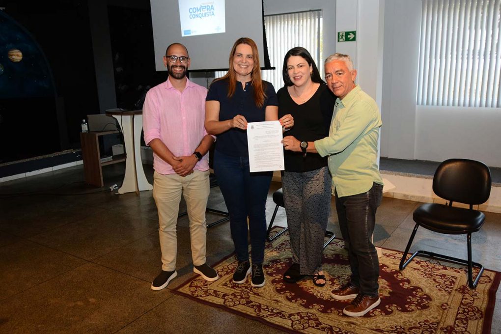 A prefeita Sheila Lemos assinou nesta quarta-feira (20), em cerimônia realizada no Planetário Everardo Públio de Castro, o Decreto nº 22.833/2023 que cria, oficialmente, o programa Compra Conquista. A iniciativa foi desenvolvido pela Prefeitura de Vitória da Conquista, por meio da Secretaria Municipal de Gestão e Inovação (Semgi), em parceria com o Serviço Brasileiro de Apoio às Micro e Pequenas Empresas (Sebrae). O objetivo é facilitar o acesso dos empreendedores locais aos processos licitatórios abertos pelo Governo Municipal.