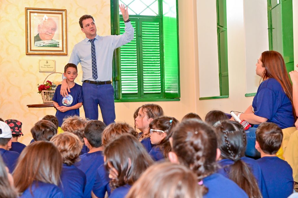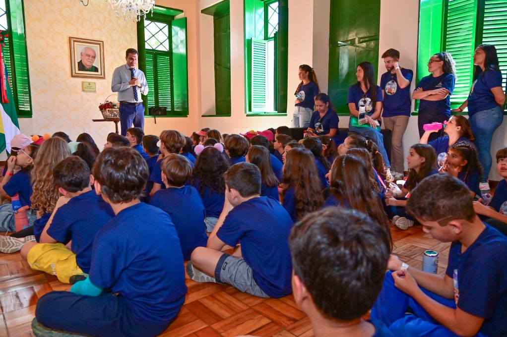 A Prefeitura de Vitória da Conquista recebeu um grupo de 50 estudantes da Escola Maria Salomé em visita ao Paço Municipal. O vice-prefeito Aloísio Alan Fernandes recepcionou as crianças no Memorial Murilo Mármore, onde elas puderam conhecer a galeria dos ex-prefeitos da cidade e saber um pouco da história de alguns deles.