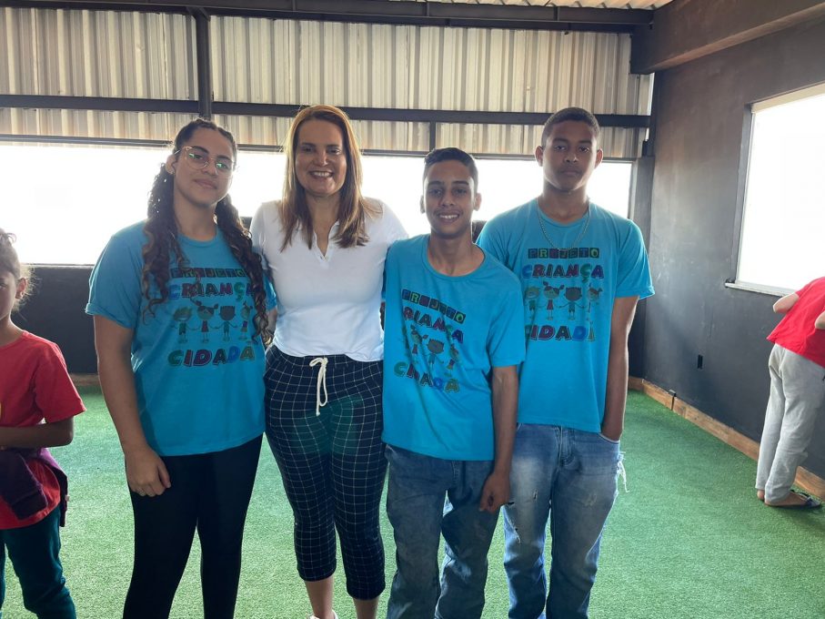 A prefeita Sheila Lemos visitou, neste sábado (15), as instalações do projeto Criança Cidadã, no bairro Bateias II, Zona Oeste de Vitória da Conquista, mantido, desde 2017, pelo casal Erick Brizola e Franciny D’Esquivel Dutra – ele diretor regional e ela coordenadora regional do Criança Cidadã.