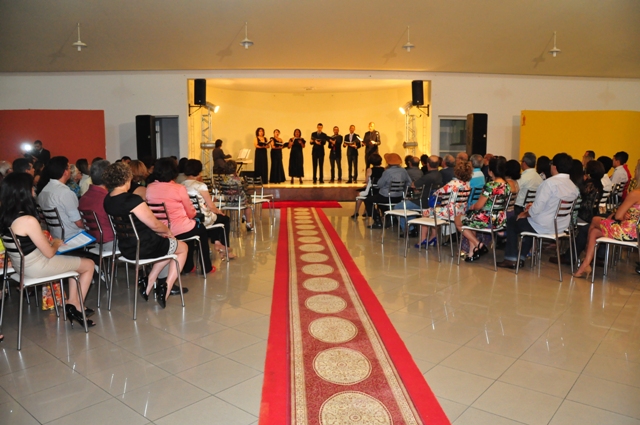 Ao cair da noite desse sábado, 23, as vozes do grupo Arena Companhia de Artes ecoaram pelo salão de eventos do Senac e propiciaram as pessoas presentes uma atmosfera clássica e sacra. O grupo, que veio de Salvador, apresentou o Concerto Mariano, emocionando os ouvintes.