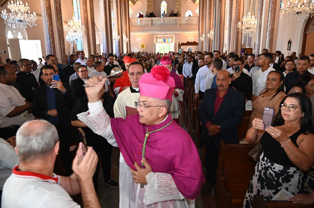 Durante a cerimônia, que teve a participação de 20 bispos e mais de 100 padres de diversas regiões do Nordeste, o novo arcebispo foi conduzido à sua Cátedra, onde foi feita a entrega do Báculo que pertenceu ao primeiro bispo de Vitória da Conquista, Dom Climério Andrade.