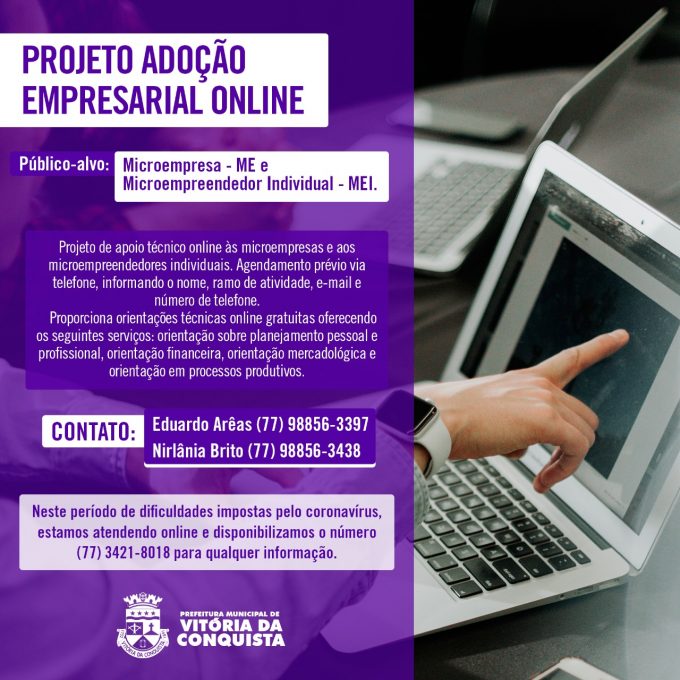 Já para obter mais informações sobre o projeto de Adoção Empresarial, além dos telefones, os microempreendedores e microempresários podem entrar em contato com a Semtre pelo email núcleodeprojetossemtre@gmail.com