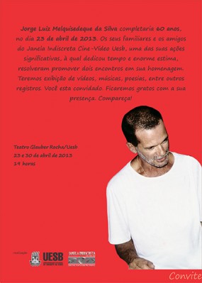 Para homenagear a pessoa e o profissional especial que foi Jorge Melquisedeque, o Janela Indiscreta, um dos frutos do seu trabalho que permanecem, realiza, junto com familiares e amigos, dois encontros, um no dia 23 de abril e outro no dia 30, sempre às 19 horas, no Teatro Glauber Rocha. A programação conta com exibições de vídeos, músicas, poesias, entre outros registros, e todos estão convidados a participar.