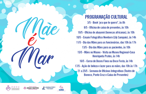O “Mãe é Mar” integra o projeto “Práticas Integrativas: A arte no ambiente hospitalar” e acontece, em sua maioria, no próprio hospital. Confira a programação completa: