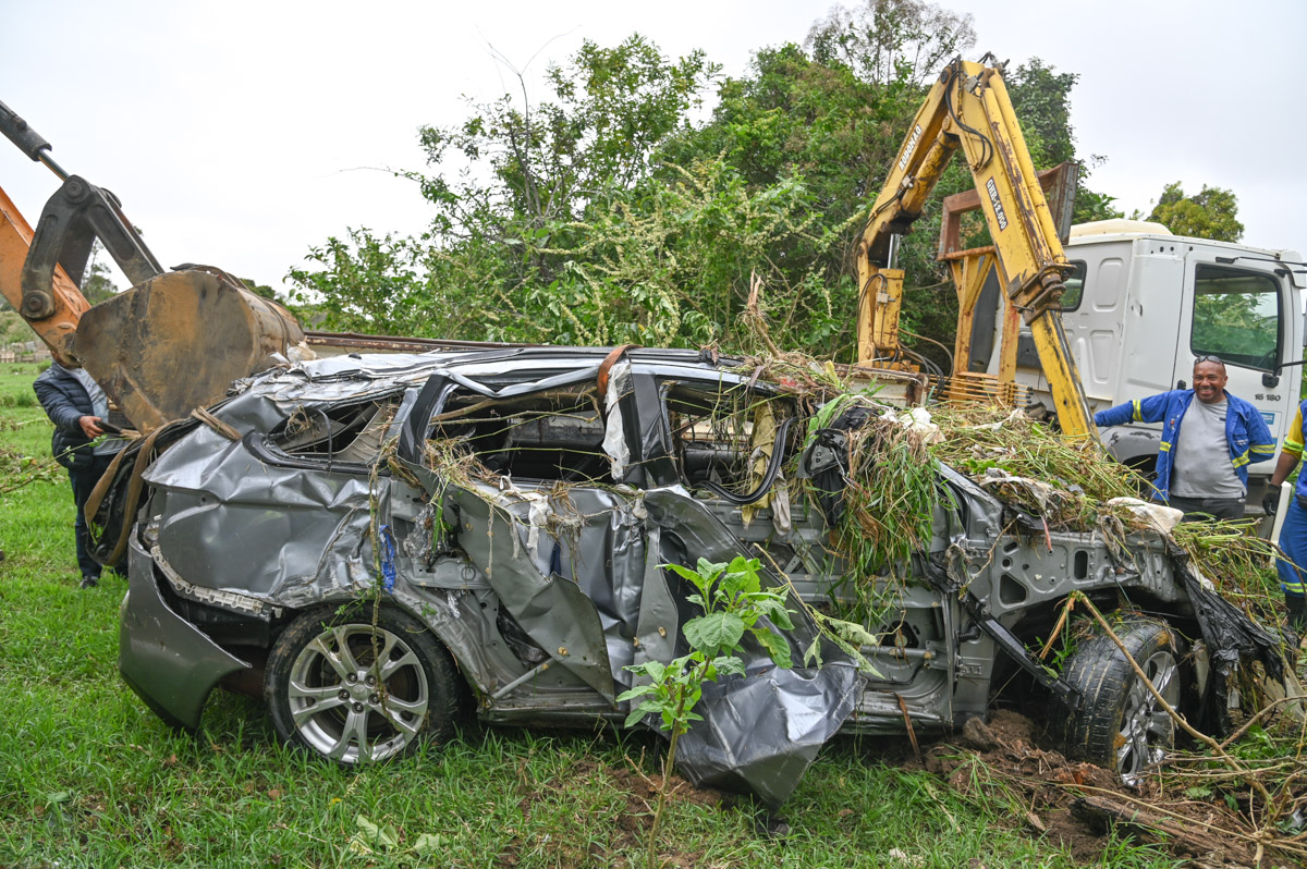 Uma força-tarefa da Prefeitura Municipal segue monitorando os locais afetados pela chuva de domingo (9). Por volta do meio-dia de hoje, o veículo arrastado, ontem, pela enxurrada foi encontrado no canal da Avenida Caracas, que deságua no Rio Verruga. O motorista, que chegou a ser levado pela correnteza, conseguiu se agarrar a galhos de árvores no trecho onde passa o Rio Verruga e se salvou. Após conseguir sair do canal na Avenida Bartolomeu de Gusmão, ele foi atendido pelo Samu 192 e encaminhado para a Santa Casa de Misericórdia, com apoio do Governo Municipal.