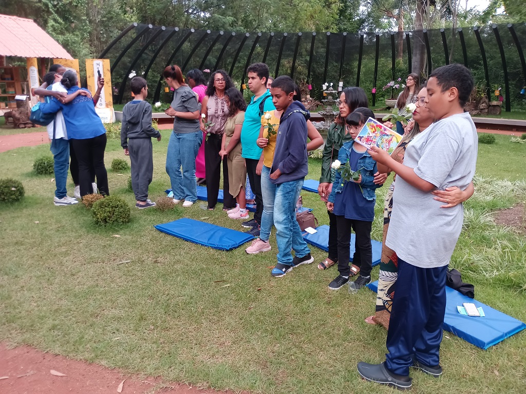 A Escola Municipalizada Carlos Santana realizou uma homenagem para as mães de alunos atípicos (que têm alguma deficiência), com uma programação no Orquidário Municipal Zilda Gusmão. Atividades de relaxamento, surpresas com a participação dos filhos, música, lembranças e lanche fizeram parte da ação.