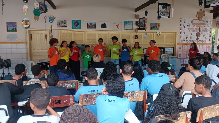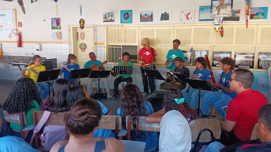 A Escola Municipalizada Fernando Spínola recebeu uma apresentação da Orquestra do Programa Núcleos Estaduais de Orquestras Juvenis e Infantis da Bahia (Neojiba). A programação foi a culminância do Projetos Arte Cantada, os 184 anos de Vitória da Conquista, comemorados no último dia 9, e o Dia Nacional de Zumbi e da Consciência Negra (20). A apresentação, que contou com três equipes, aconteceu na última terça-feira (19), com um repertório do clássico ao popular. A primeira foi o Coro de Câmara, coral com as quatro vozes, seguido do Conjunto de Sopro (madeiras), com flauta transversal, clarinete, oboé e fagote, e a Camerata Carlos Jehovah, de cordas friccionadas, que apresenta o contrabaixo, violoncelo, viola e violino.