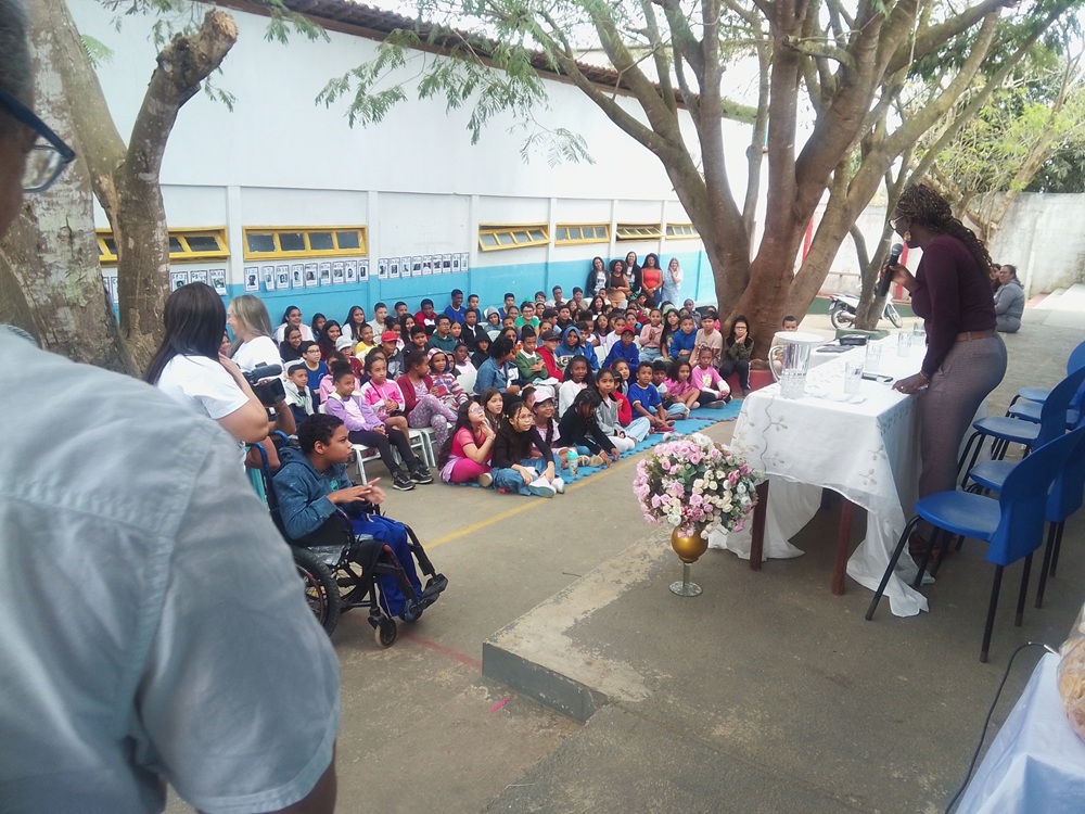 Olga também agradeceu pela receptividade e elogiou a programação da Escola Municipal Idália Torres. “Eu estou muito tocada de que a escola tenha um programa tão bonito como esse sobre a luta contra o racismo e a favor da diversidade cultural. A direção disse que é uma atividade cotidiana, que faz parte da identidade da escola. Eu digo que isso é muito bom. Bravo! E que todo esse engajamento fez eco à minha personalidade e à minha identidade científica”, observou.