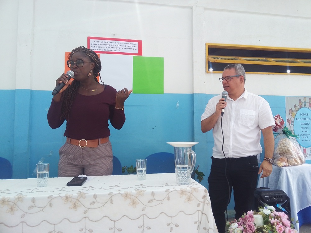 A Escola Municipal Idália Torres, localizada no Simão, recebeu, nesta sexta-feira (29), a visita da professora e pesquisadora Olga Akou Kochie, que integra o quadro docente da Universidade de Bordeaux Montaigne, na França. A proposta foi uma roda de conversa abordando o tema do racismo.