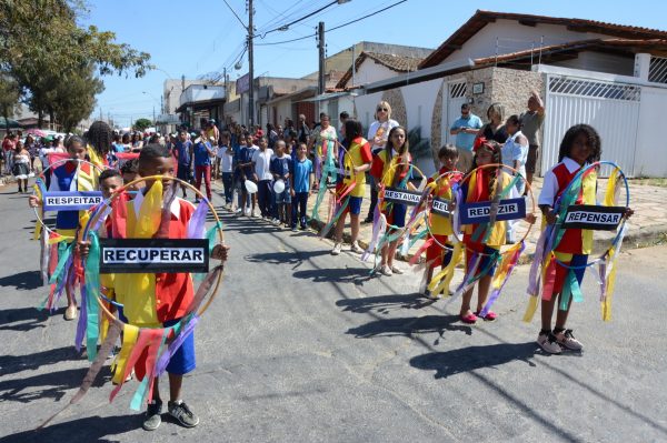 O desfile marcou o encerramento do projeto “Escola e Sustentabilidade: Educação para Vida” da Escola Municipal Mário Batista. O evento aconteceu na manhã deste sábado (29) e contou a com a participação de mais 250 alunos das turmas do primeiro ao quinto ano fundamental.